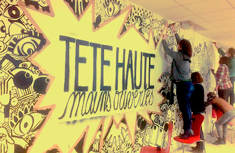 Dans le prolongement du travail effectué lors des workshops précédents, celui de cette année s’est déroulé au lycée professionnel Les Canuts les 5 et 6 mars 2018, autour de la thématique de l’entraide et de la solidarité et une accroche « Tête haute, mains ouvertes ».