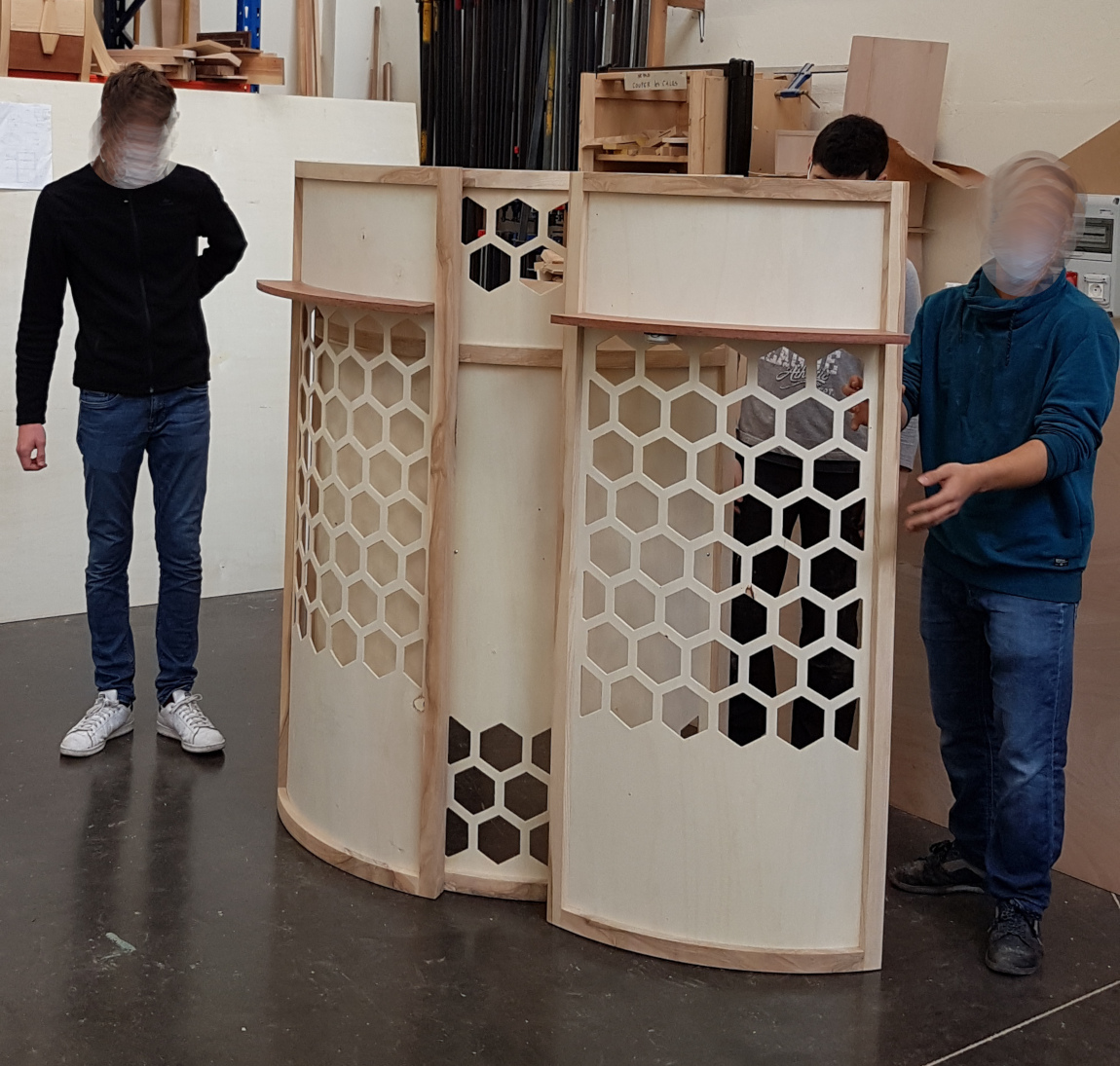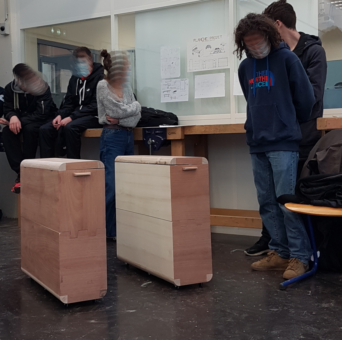 L’objectif du projet est de placer les élèves dans une démarche de création dans un contexte de partage et d’échange des savoirs et des compétences associant design, ébénisterie et CAO.