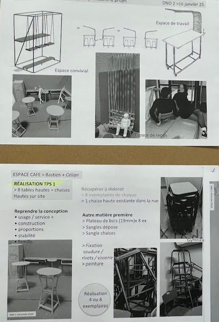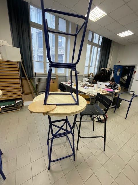 Dans un premier temps, il a s’agit de s’approprier la démarche de conception libre et ouverte du designer italien en reconstruisant au moins un modèle issu du cataloguede l’exposition pré-citée. Puis, dans un second temps, l’exploitation des différents principes constructifs et structurels a permis d’imaginer un dispositif singulier. Ce travail en groupe de 3 a permis d’associer 2 étudiants de DN MADe et 1 étudiant de DSAA !