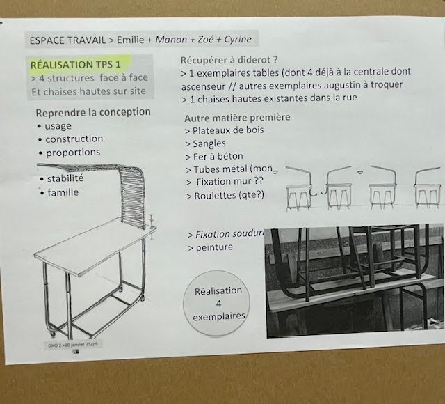 Les étudiants de DN MADE 2 objet de la Martinière ont expérimenté ce semestre en construisant à échelle 1. Des modules pour s’installer et vivre dans l’espace scolaire du site Diderot avec des allers retours utilisateurs autour de fonctions simples comme “travailler”ou “boire un café” à partir de matériaux de réemploi mis en scène dans l’espace scolaire avec la couleur.